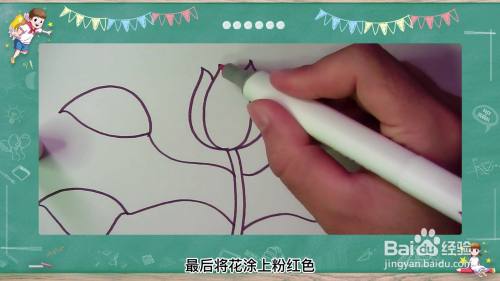 最后,将花涂上粉红色,叶子和茎涂上绿色。