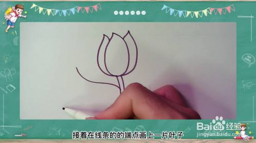 接着在线条的的端点画上一片叶子。