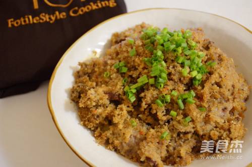 9上锅后水开转为小火慢蒸35分钟,直至蒸熟透就可以出炉啦。最后撒上一些小葱就可以啦。