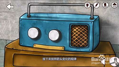 3、接下来按照箭头变化的规律,点击收音机的按钮
