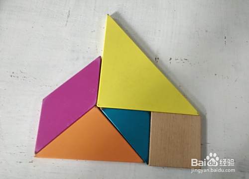 摆上红色三角形,放在黄色三角形的上面,放上如图。