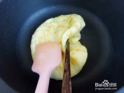 看到饼基本熟了之后,一手用铲刀,一手用筷子,或者随便用自己趁手的工具,把饼向中间挤压,一边挤一边旋转着,饼的整个面都挤压到位。然后就可以出锅了,这样烙出来的饼绝对又软又蓬松,特好吃