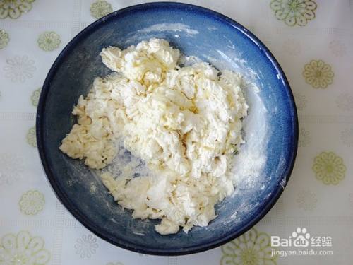 调点油酥。用油酥的方法做饼的隔层,饼的层次分明,还能蓬松。直接用面粉和油加一点盐拌匀就行,拌成不能流动的面糊状,比较稠一点,我拌了5勺面粉的量