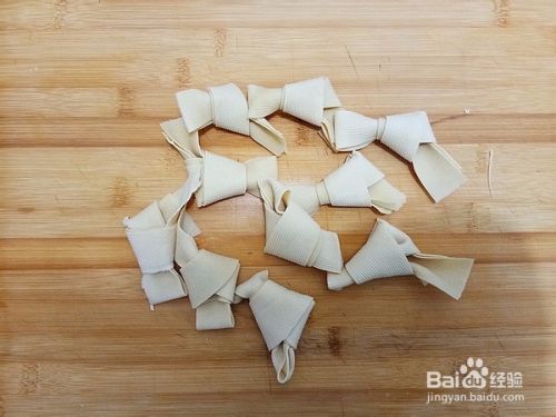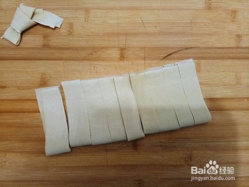 豆皮切成宽条,切好的豆皮打成豆皮结