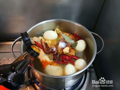 加入食盐、生抽、老抽,中火烧沸后改微火卤20分钟关火