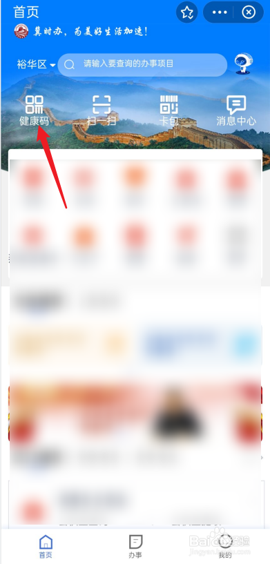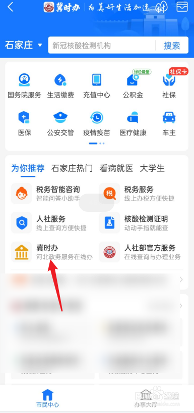 在冀时办界面,点击左上角的健康码。
