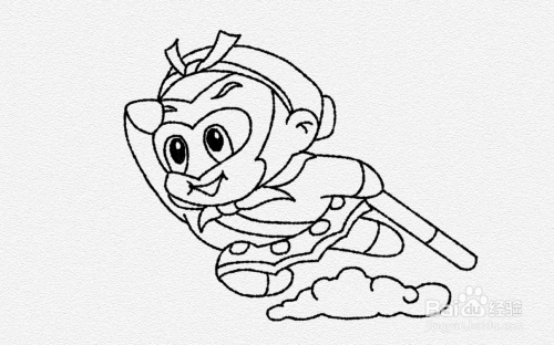 然后在孙悟空的脚下画上筋斗云,手上画上如意金箍棒。