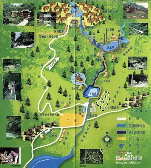 漂流区、薰衣草木屋区、山上的水车世界、龙潭瀑布区、温泉与水世界区等。