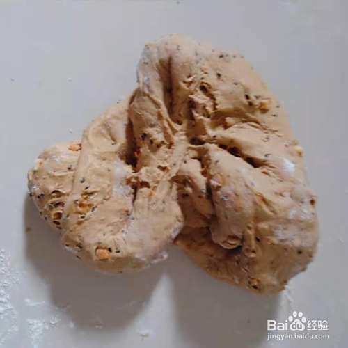 揉到差不多了,加核桃红枣和黑芝麻,混合均匀。