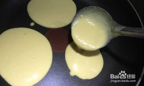 平底锅小火刷油,一勺一勺舀入煎至两面金黄即可。
