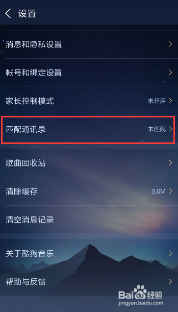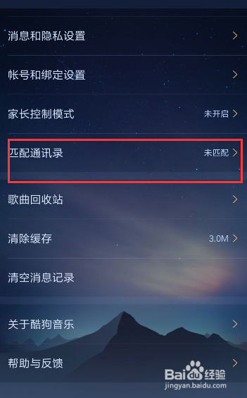 来到设置的页面,在列表中选择匹配通讯录好友,如图所示