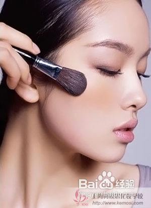 这种腮红的画法,要使用斜头腮红刷从笑肌处开始往太阳穴的方向刷,在脸上从下到斜上方,使用粉刷扫上一层腮红,留下较为流畅的颜色;