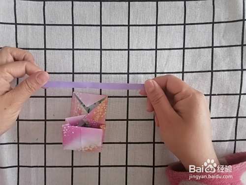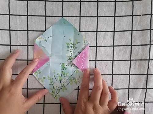 把包按照折痕向里对折,上下两边都是同样的方法。如图所示。