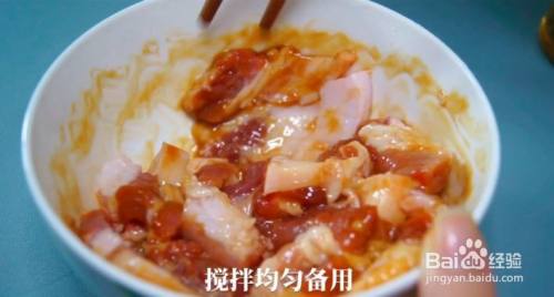 五花肉腌制一下,加入1勺酱油,半勺蚝油,小半勺淀粉,适量油搅拌均匀