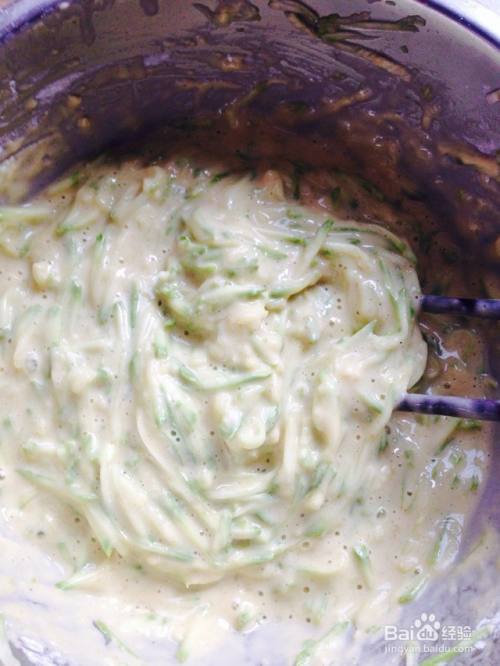 这是我最后搅拌好的面糊,我做东西都是凭感觉,所以都没有定量,面糊不要硬,否则做出的饼口感会很硬、不好吃哦