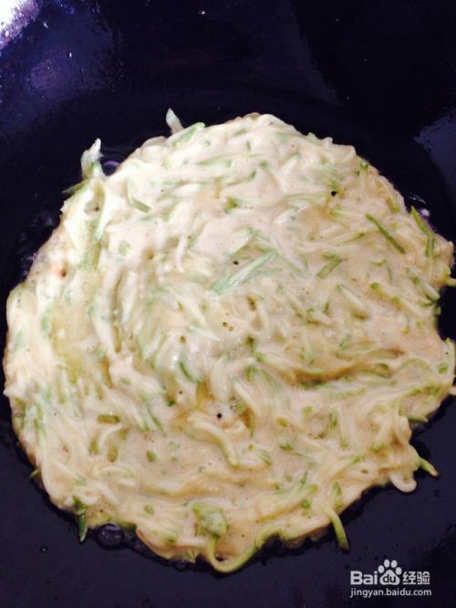 面糊下锅后,用筷子或者铲子摊开起,尽量薄,好熟,有磨具的话可以用上,做个花样