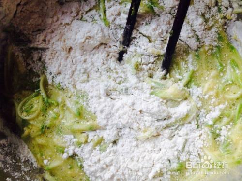 加入适量面粉,面粉不要多哦。加一些搅拌,看稠稀,选择是否继续加入面粉