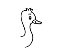 首先画出鸵鸟的头部,画出它细长且弯曲的脖子,头顶画上一撮毛发,画出圆圆的眼睛和扁扁的嘴巴。