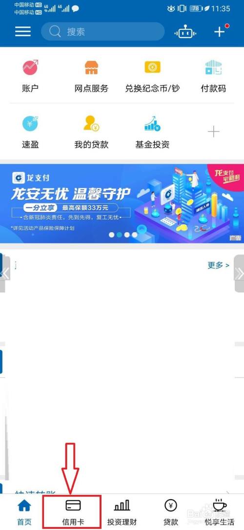 进入建行APP首页,选择打开【信用卡】,如下图所示。