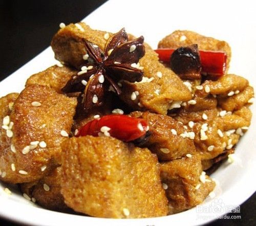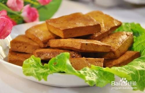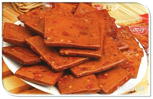 豆腐干,汉族传统豆制品之一,是豆腐的再加工制品。咸香爽口,硬中带韧,久放不坏,是中国各大菜系中都有一道美食。豆腐干营养丰富,含有大量蛋白质、脂肪、碳水化合物,还含有钙、磷、铁等多种人体所需的矿物质。豆腐干在制作过程中会添加食盐、茴香、花椒、大料、干姜等调料,既香又鲜,久吃不厌,被誉为"素火腿"。