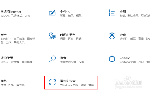在Windows设置界面,单击更新和安全。