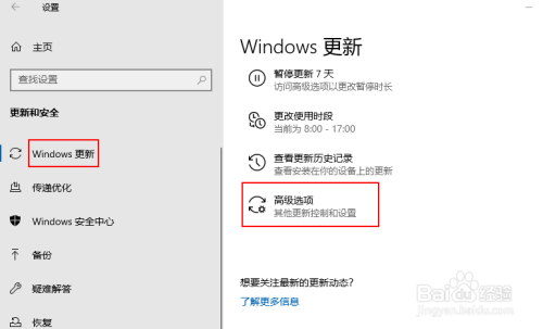 在Windows更新选项中,单击高级选项。