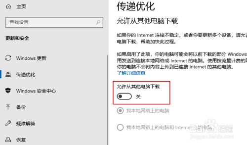 在这里,您只需要在“允许从其他电脑下载”按钮“关闭” 即可。