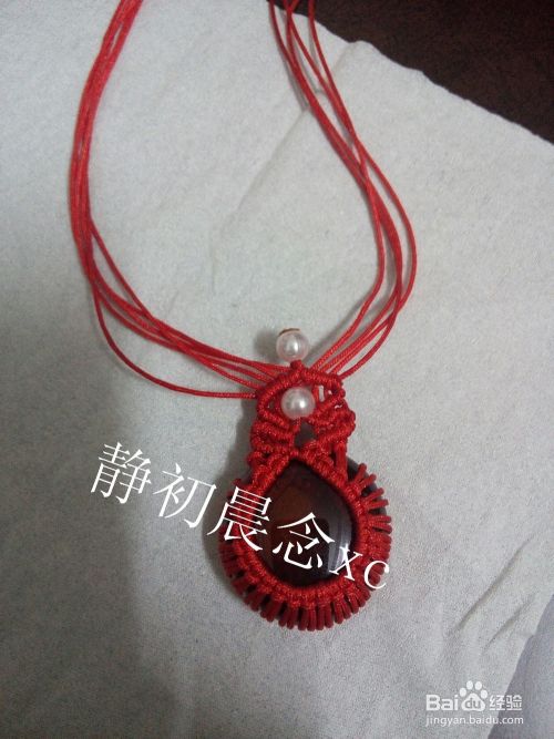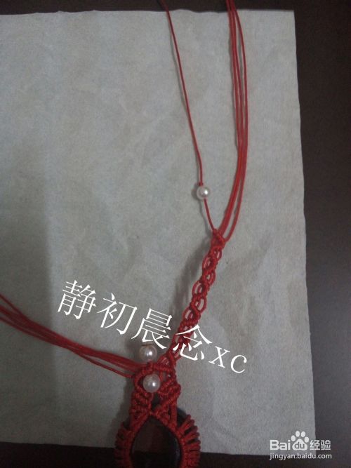 从轴线开始,再将轴线挨着的第二根线打一个结,穿上珠子,再打一个结