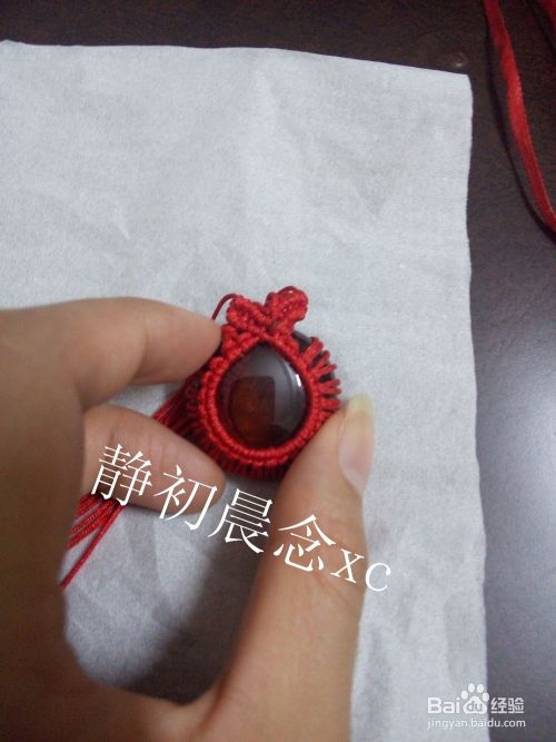 完成上一步骤后,再将编织云雀结的那根线,也就是那根长线,再以第二根短线编织斜卷结,至于中间线的长度取决于石头的厚度,根据实际情况而定