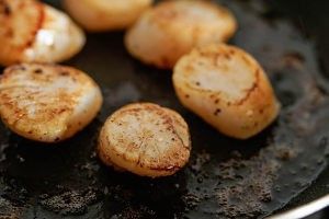 然后再放上腌制好的带子,中小火每面各煎30-40秒,观察带子表面略有焦黄即可,出锅前盖上盖子,关火焖1-2分钟。