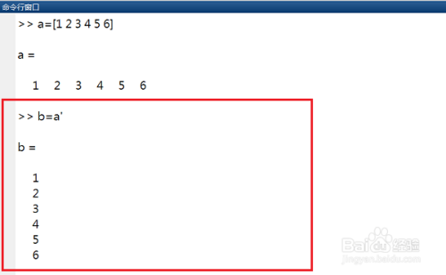 第二步输入b=a',将行向量a转成列向量b,如下图所示: