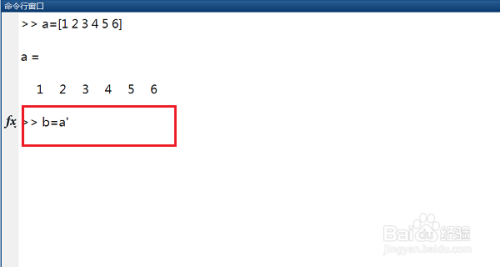 第一步打开matlab,在命令行窗口输入行向量a=[1 2 3 4 5 6],如下图所示: