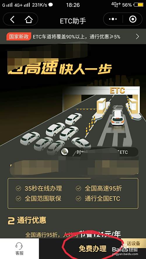 我们可以大概了解下办理ETC的好处,然后点击下方的免费办理