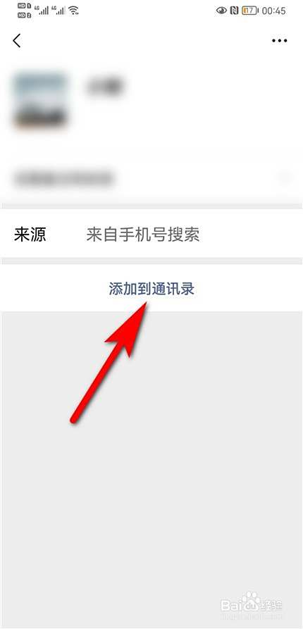 页面弹出好友微信,点击添加到通讯录即可。