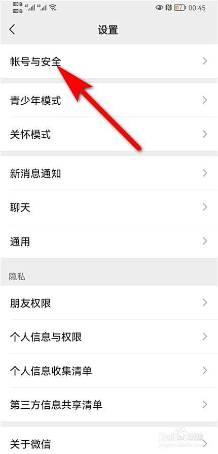 点击帐号与安全
