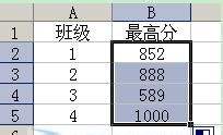 B2单元格得出数据之后,直接使用填充功能进行填充即可,其他班级的最高分自然会填充上!