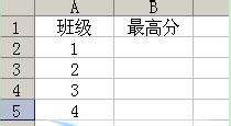 上图,为Sheet1表,仅有两列,分别为“班级”和“最高分”,大家仔细看,分明就是求对应班级号的最高分!
