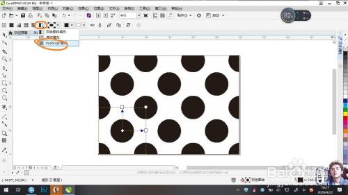 再点击左边工具栏中的交互式填充工具,点击属性栏最下排的双色图样填充右下角的小黑三角形,下拉选择PostScript填充。