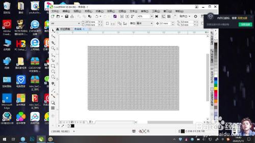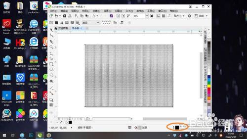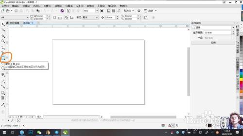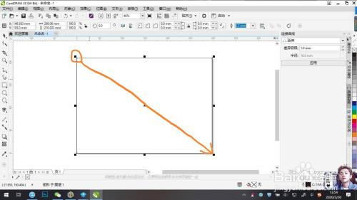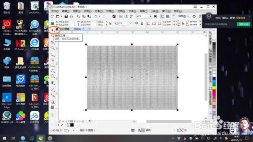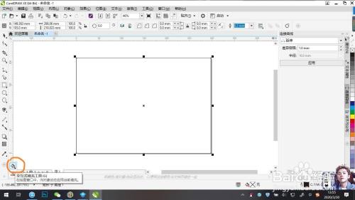 点击左边工具栏中的矩形工具,在页面左上角单击鼠标左键,长按拖动至页面右下角松开。