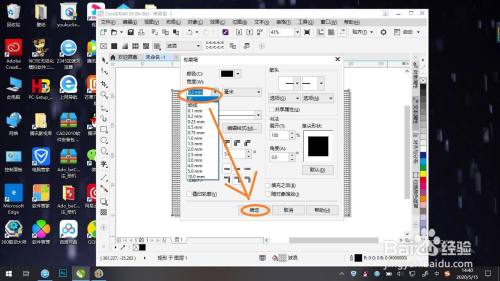 双击右下角黑色色块(轮廓色),宽度选择无,再点击确定。