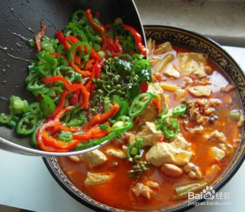 炒锅放油,下入青花椒炸香。