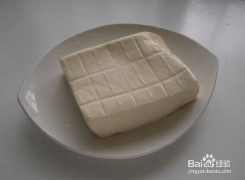 嫩豆腐一块,静置出水后备用。