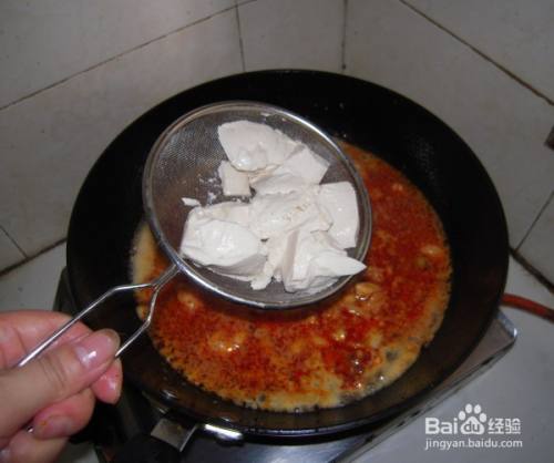 加入适量的清水或者高汤,然后放入焯水的豆腐。