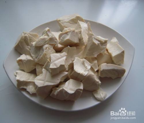 豆腐用手掰块备用。
