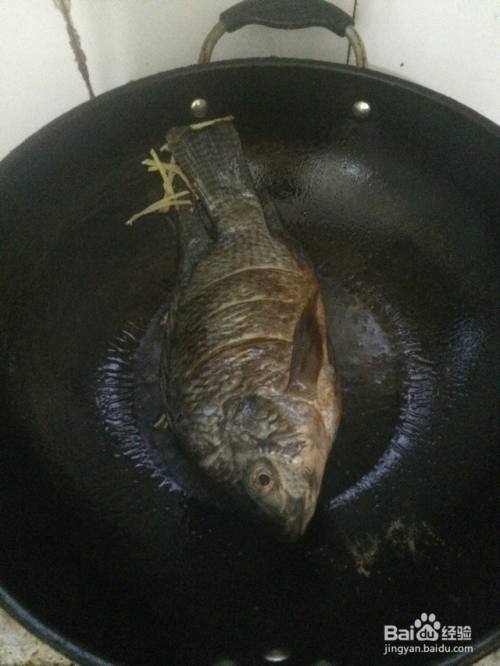 放油至七分热,放点盐和姜丝,(这样避免鱼粘锅),煎鱼至熟捞起。