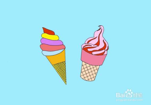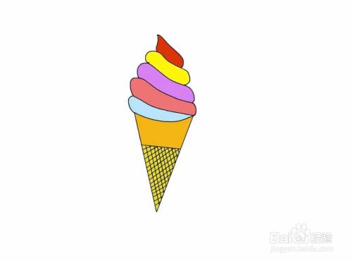 最后涂上不同的颜色,这样一个冰淇淋就画好了。