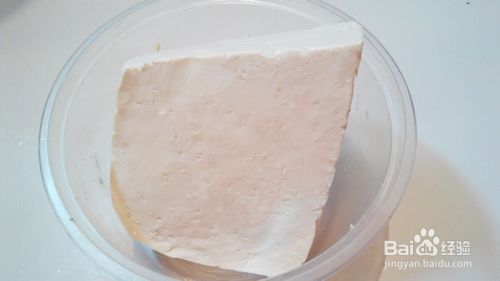 豆腐买回来洗净,放入开水中烫一下,一来可以定型,二来可以去除豆腥味。