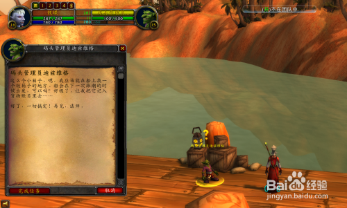 【接任务1】在贫瘠之地十字路口的"药剂师赫布瑞姆"处(坐标51,30)接任务"码头管理员迪兹维格"。