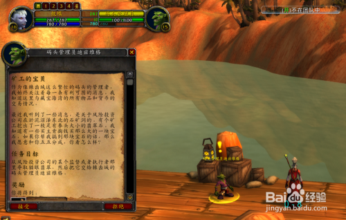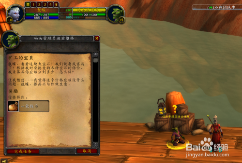 【接任务2】继续在棘齿城码头的"码头管理员迪兹维格"处(坐标63,38),接任务"矿工的宝贝"。
