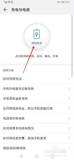 进入到【充电与电源】页面后,接着再点击【开始检测】功能。